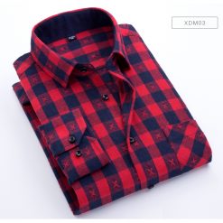 Men’s Long Sleeve Contrast Bold Plaid Brushed Shirt With Left Chest Pocket Slim-Fit Comfortable Soft