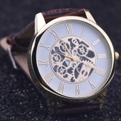 Watches Men Rreloj Hombre Golden Hollow Watch, Luxury Casual Steel Business Imitate Mechanical Watch