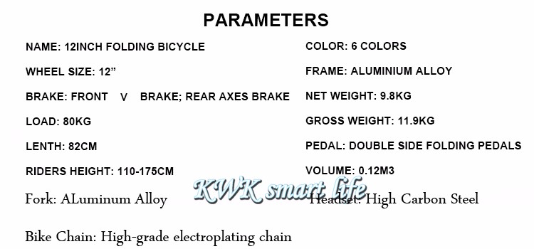 Kwheel Aluminum Alloy Folding Bicycle 12inch Cycling