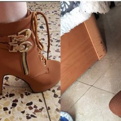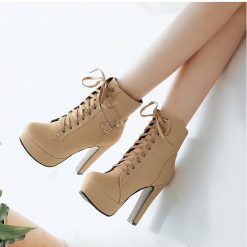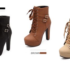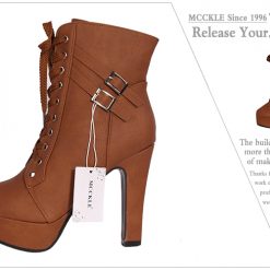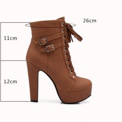 Ankle Boots For Women Female High Heels Lace Up Autumn Shoes Woman Buckle Platform Short Boots