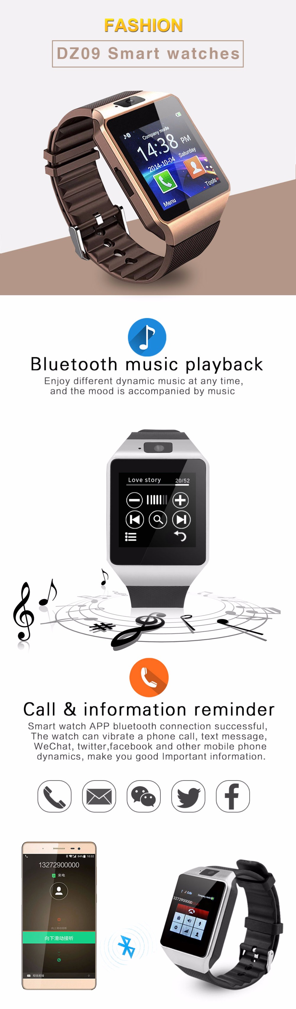 Bluetooth Smart Watch Smartwatch DZ09 Android Phone Call Relogio 2G GSM SIM TF Card Camera for iPhone Samsung HUAWEI PK GT08 A1