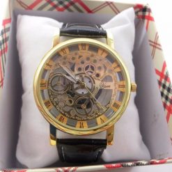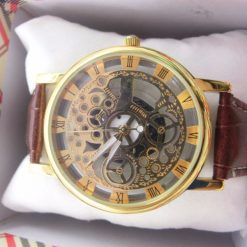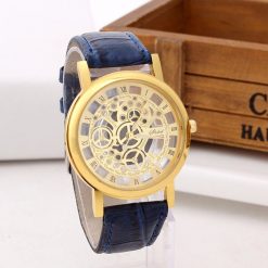 Watches Men Rreloj Hombre Golden Hollow Watch, Luxury Casual Steel Business Imitate Mechanical Watch