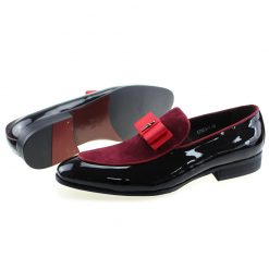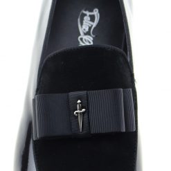 - Highlight: Genuine Patent Leather and Nubuck Leather Patchwork With Bowtie