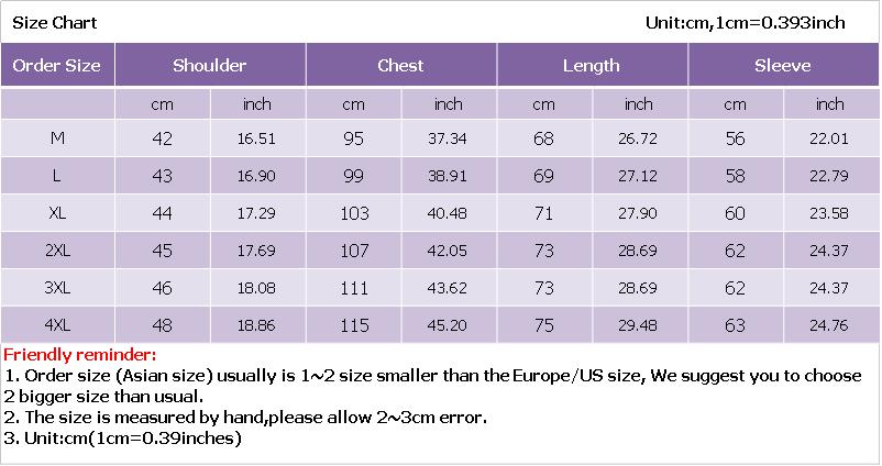 | Size | M, L, XL, XXL, XXXL, 4XL |