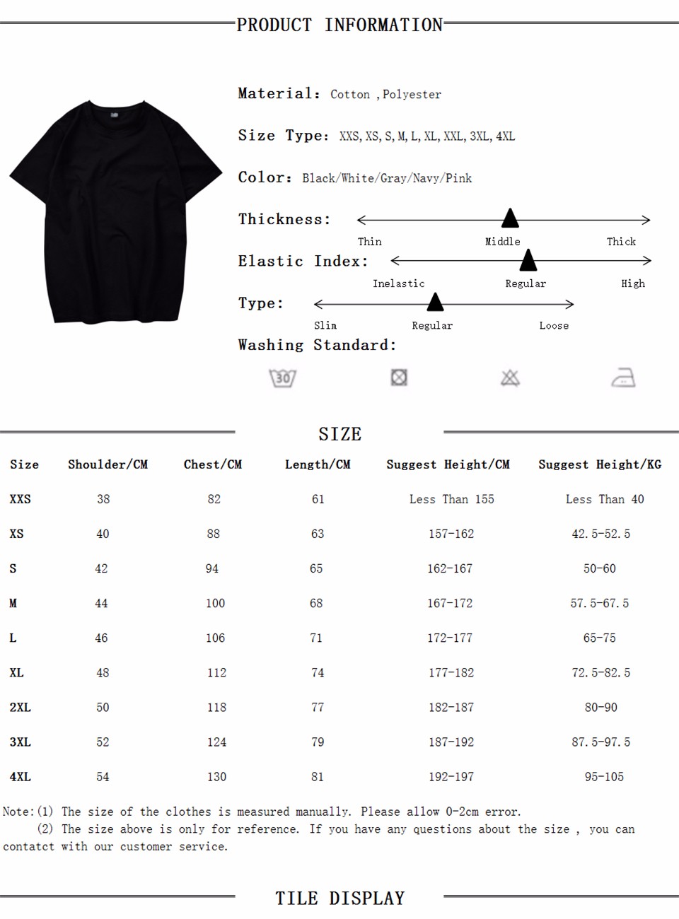 | Size | XXS, XS, S, M, L, XL, XXL, XXXL, 4XL |
