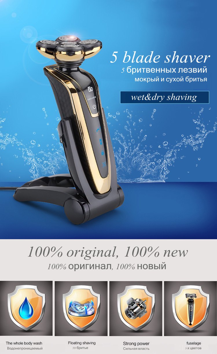 Wet/Dry 5D Shaver For Men Electric Shaver Electric Razor Rechargeable Men’s Shaving Machine Waterproof Beard Shaver Wireless Use