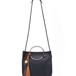 Women’s handbag with ring handle, PU leather shoulder bag